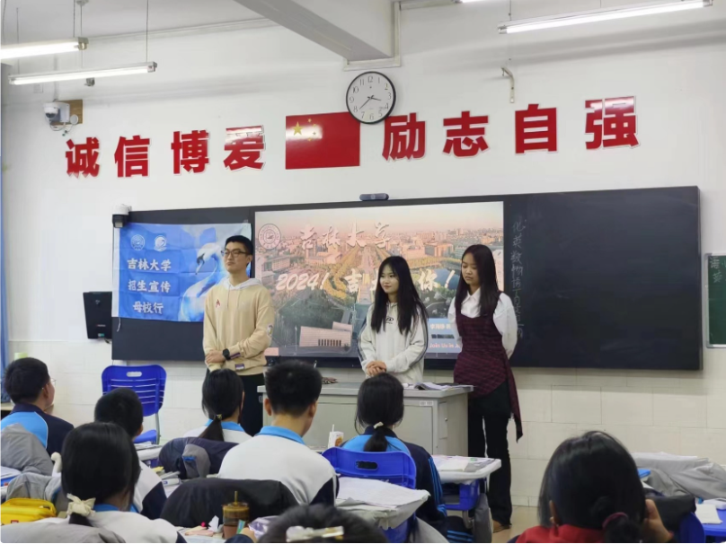 根据吉林大学《关于开展“2024年寒假招生宣传母校行”实践活动的通知》,2024年1月,37266威尼斯官网选拔优秀学子作为寒假招生宣传志愿者,回到高中母校开展报考指南、学习成长、青春分享等招生宣传活动。在提升吉林大学知名度和影响力、吸引更多优质生源报考的同时,也为学生参与社会实践和自身锻炼成长提供了良好的平台。