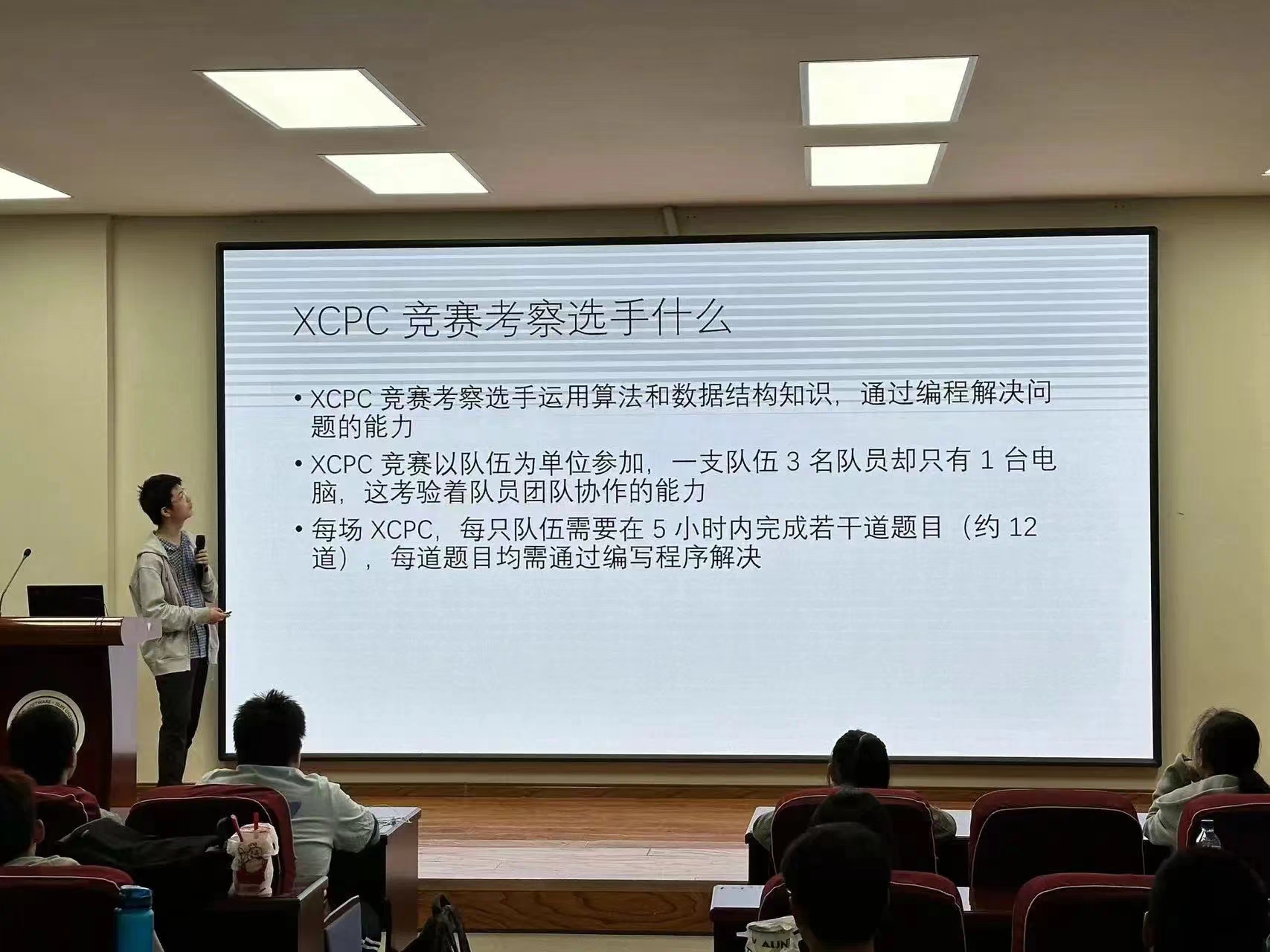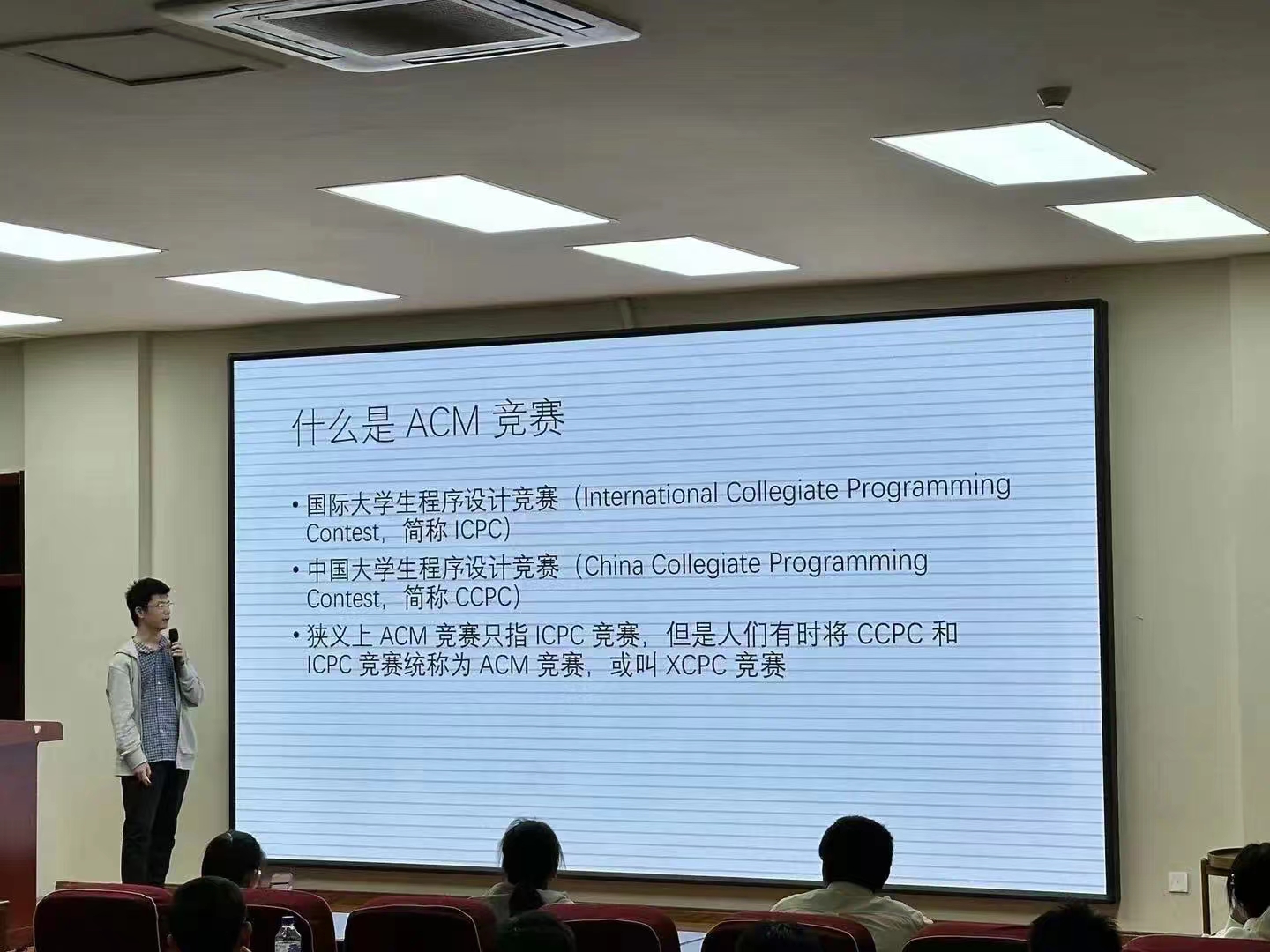 为提升同学们对ACM-ICPC竞赛的了解和兴趣,分享备赛经验和技巧,并为ACM战队注入新鲜力量,我院特邀2023级唐敖庆班ACM战队队长张智祺同学,于9月28日在王湘浩楼B108会议室举办了ACM竞赛专题讲座。